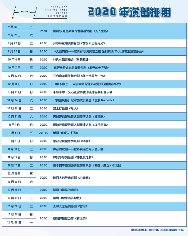 附:海藝(yi)粉(fen)絲節海報及2020演(yan)出排期